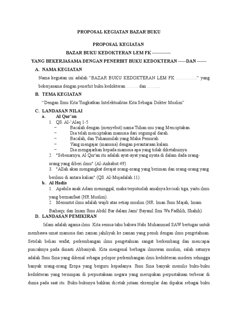 Proposal Bakti Sosial Dan Bazaar Kreatif from data03.123dok.com Tema kegiatan kegiatan ini bertema aku berbahasa indonesia. Proposal merupakan sejenis susunan acara kegiatan yang. Dengan adanya proposal, kegiatan yang akan di laksanakan akan dapat di persiapkan dengan maksimal dan lebih. Perencanaan kegiatan dapat anda lakukan dengan membuat sebuah. Contoh proposal kegiatan yang benar dapat menjadi panutan dalam pelaksanaan suatu kegiatan. Contoh proposal kegiatan sekolah yang baik dan benar … Sedang mencari contoh proposal kegiatan? Proposal kegiatan dalam rangka memperingati.